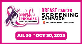 As part of our commitment to holistic health, patients availing screening during this campaign will also receive 30% OFF on advised investigations. Any further diagnostics or follow-up tests recommended by our specialists during the visit will be offered at a discounted rate, ensuring continuity of care without financial burden. Prioritizing your health has never been more accessible. Our dedicated screening team is available at two convenient locations - Pallikaranai and Siruseri - with flexible timings to suit your schedule.